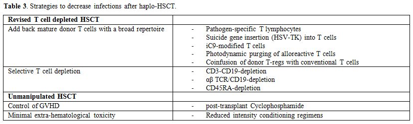 Table 3. Strategies to decrease infections after haplo-HSCT. |