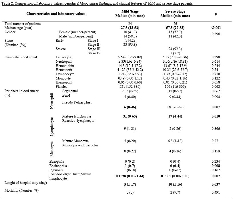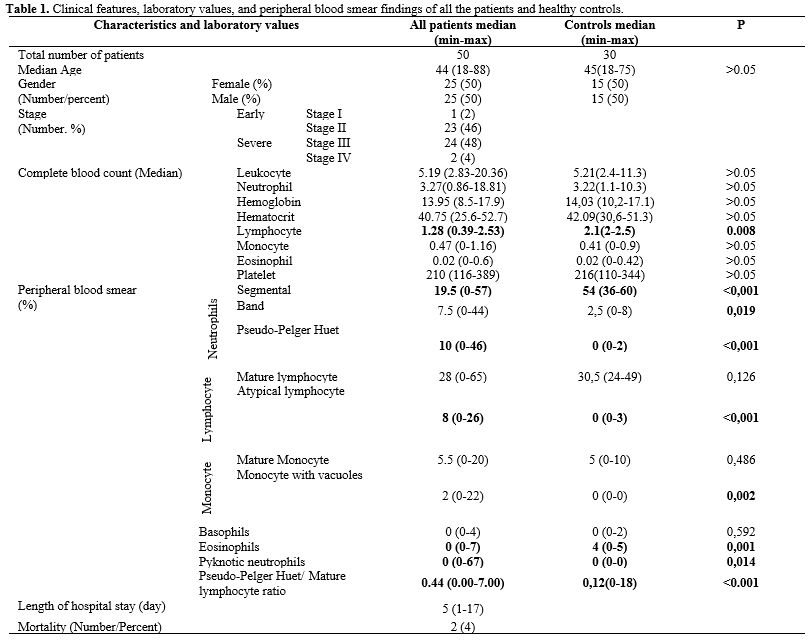 Peripheral smear samples of the patients were compared with the age and