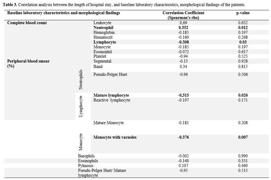 correlation was observed between hospitalization duration and mature
