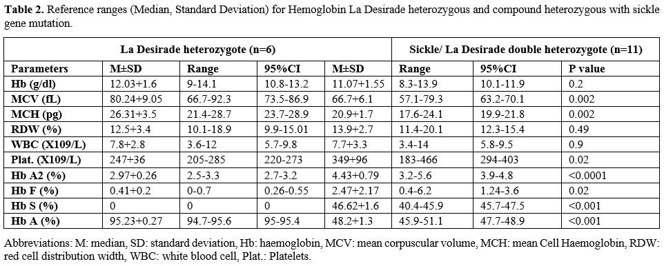 and compound heterozygosity for both Hb La Desirade and HbS. Notably,