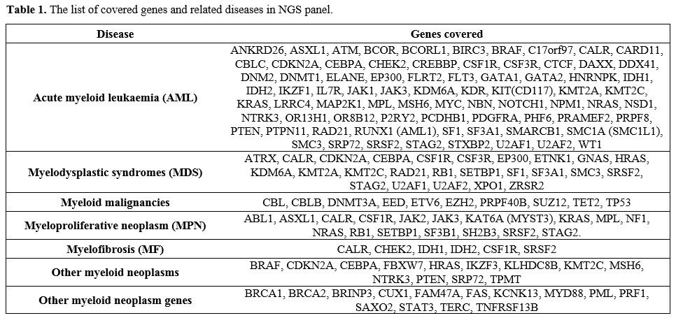 Targeted next-generation sequencing using a multigene panel in myeloid