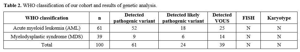 Our cohort consists of 100 patients diagnosed with A.M.L. (61) and