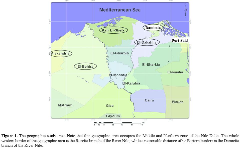 Nile. The Northern border is the Mediterranean Sea (Figure 1). The area of the Nile delta is considered an endemic area for S. mansoni infection.[10]