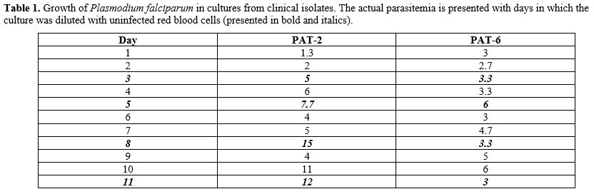of the intra-erythrocytic cycle.[2] Compared to long-established laboratory strains, clinical parasite isolates tend to have low rates of multiplication in vitro, at least initially. The precise mechanisms underlying adaptation to in vitro