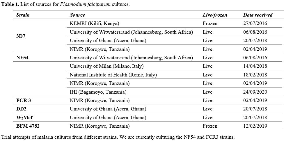 Frozen parasites: These were obtained from (Kenya Medical Research