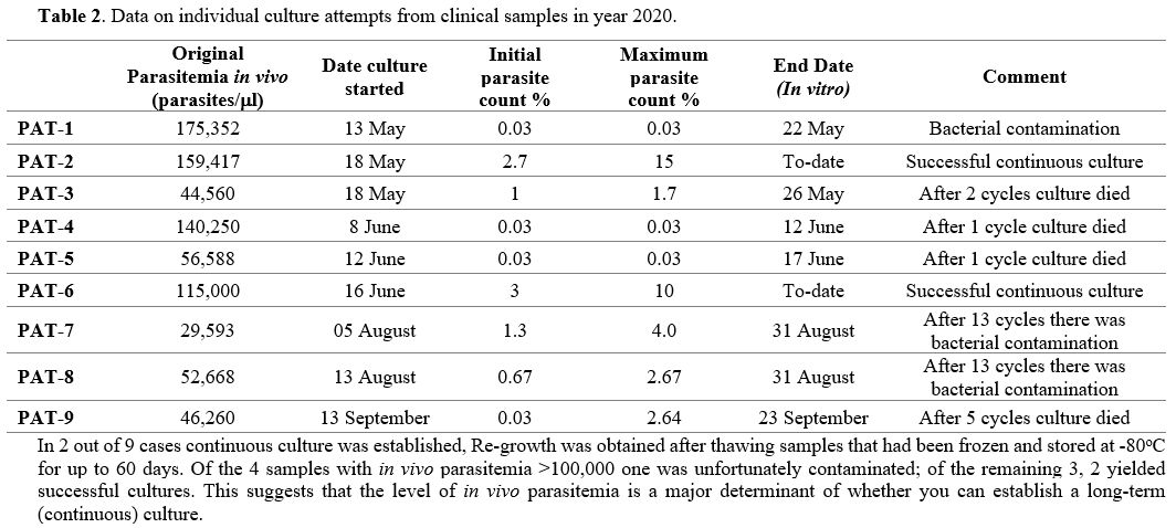 The main aim of our study was to define what are the minimum facilities required to obtain continuous culture of P falciparum