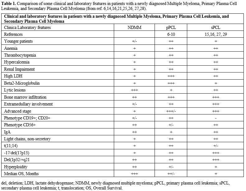 plasma cell leukemia (pPCL) and secondary plasma cell leukemia (sPCL)